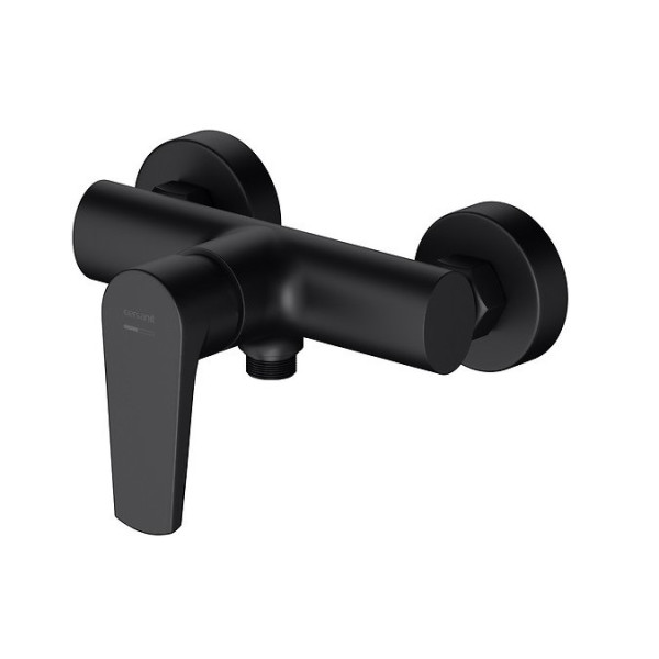 Цей змішувач має класичну конструкцію із зручною рукояткою для плавного регулювання температури і напору води. Він підходить для монтажу у стандартні душові системи приватних будинків, квартир або готелів. Модель виготовлена з високоякісних матеріалів із матовим чорним покриттям, що забезпечує стійкість до корозії і довготривалу експлуатацію у вологому середовищі.