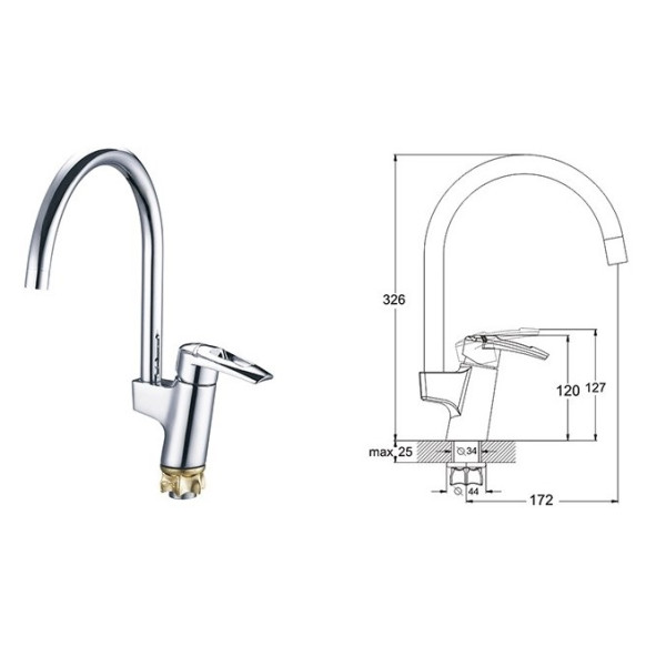 Модель має сучасний ергономічний дизайн та зручний гусак для комфортного користування мийкою. Конструкція забезпечує плавне регулювання потоку й температури води, а зручний запірний механізм гарантує легкість управління. Ідеально підходить для кухонь, офісів та інших об’єктів, де важливі практичність і естетика.