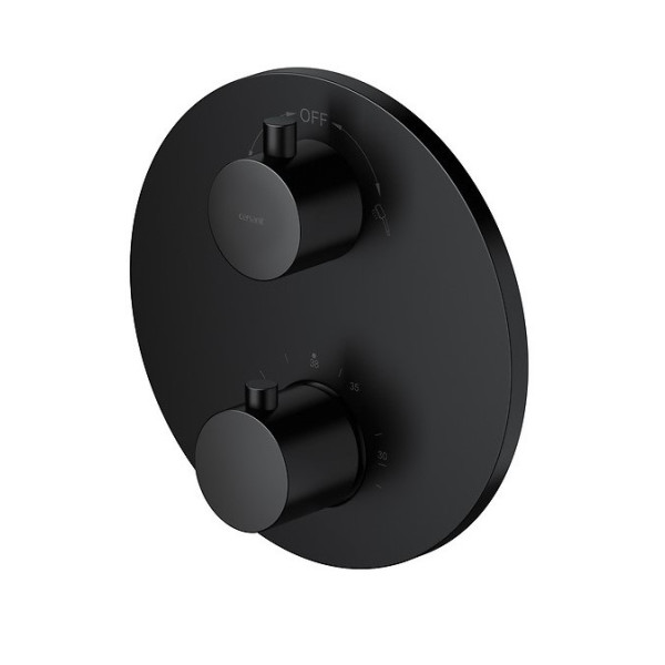 Це вбудований змішувач для ванни та душу з вбудованим термостатом, що забезпечує стабільну температуру води. Він призначений для сучасних сантехнічних систем в квартирах або будинках, де важливі комфорт та безпека використання. Чорне матове покриття додає стильний та елегантний вигляд інтер'єру ванної кімнати.