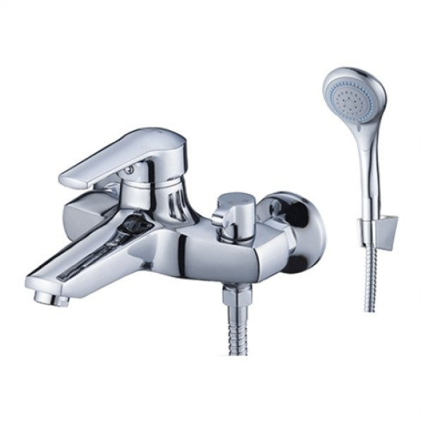 Корпус змішувача виготовлений з високоякісного металу із антикорозійним покриттям, що гарантує довговічність та естетичний вигляд. Основні елементи: корпус, носик та ручка для регулювання потоку та температури води і ручна лійка. Покриття запобігає корозії та зносу.