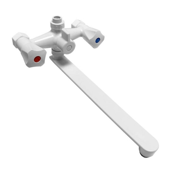 Корпус змішувача виготовлений з високоякісного пластику, що гарантує довговічність та естетичний вигляд. Основні елементи: корпус, носик та ручка для регулювання потоку та температури води і ручна лійка. Покриття запобігає корозії та зносу.