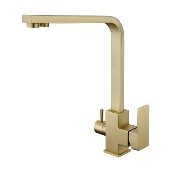 Змішувач TROYA мийка золото (осмос) — сучасний змішувач для кухонної мийки, призначений для зручного та точного контролю подачі та температури води та подачі питної води. Поєднує надійність, функціональність та стильний дизайн для щоденного комфортного використання.