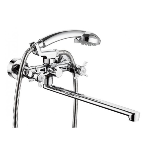 Змішувач TROYA на ванна /довгий носик – сучасний змішувач для ванної кімнати з довгим гусаком та ручною лійкою, призначений для ефективного контролю подачі та температури води. Ідеальне поєднання якості, надійності та зручності у користуванні.
