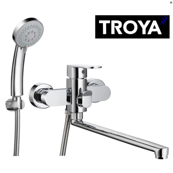 Змішувач TROYA на ванну /довгий носик має сучасний дизайн, довгий гусак забезпечує комфортне наповнення ванни, а ручна лійка дозволяє комфортно приймати ванну. Метод та зручність монтажу гарантує точне регулювання потоку та температури води. Ідеальний для домашнього використання, готелів та інших об’єктів, де важлива функціональність та стильний зовнішній вигляд.