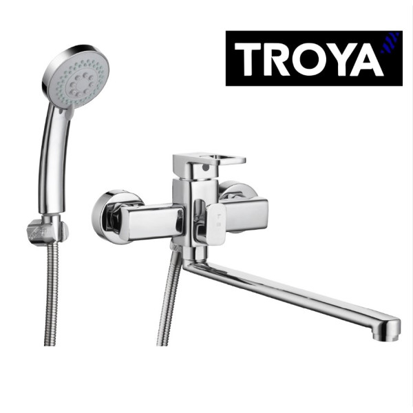 Змішувач TROYA на ванну довгий носик має сучасний дизайн, довгий гусак забезпечує комфортне наповнення ванни, а ручна лійка дозволяє комфортно приймати ванну. Метод та зручність монтажу гарантує точне регулювання потоку та температури води. Ідеальний для домашнього використання, готелів та інших об’єктів, де важлива функціональність та стильний зовнішній вигляд.