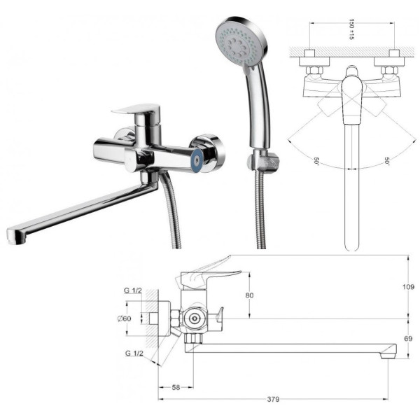 Цей змішувач має має сучасний дизайн, довгий гусак забезпечує комфортне наповнення ванни, а ручна лійка дозволяє комфортно приймати ванну. Метод та зручність монтажу гарантує точне регулювання потоку та температури води. Ідеальний для домашнього використання, готелів та інших об’єктів, де важлива функціональність та стильний зовнішній вигляд.