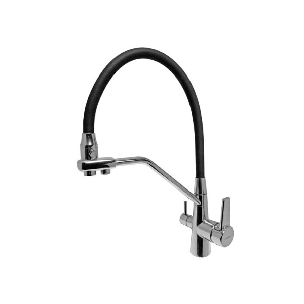Змішувач має продуману конструкцію з двома незалежними каналами подачі води: один — для гарячої та холодної води, другий — для очищеної води з системи осмосу. Це дозволяє отримувати питну воду без встановлення окремого крана. Ергономічний гусак і зручні важелі керування забезпечують плавне регулювання потоку та температури. Ідеально підходить для сучасних кухонь, де важливі естетика, гігієнічність та практичність.