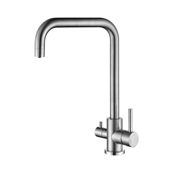 Змішувач має продуману конструкцію з двома незалежними каналами подачі води: один — для гарячої та холодної води, другий — для очищеної води з системи осмосу. Це дозволяє отримувати питну воду без встановлення окремого крана. Ергономічний гусак і зручні важелі керування забезпечують плавне регулювання потоку та температури. Ідеально підходить для сучасних кухонь, де важливі естетика, гігієнічність та практичність.