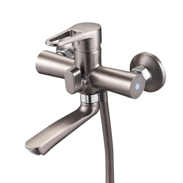 Корпус змішувача виготовлений з високоякісного металу із антикорозійним покриттям, що гарантує довговічність та естетичний вигляд. Основні елементи: корпус, носик та ручка для регулювання потоку та температури води і ручна лійка. Покриття запобігає корозії та зносу.