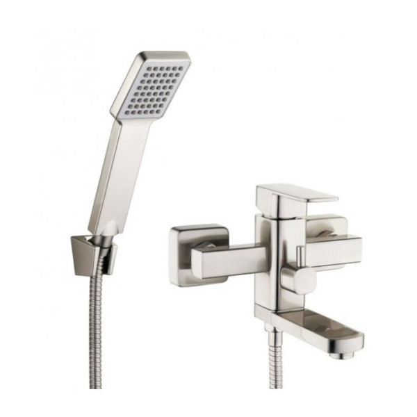 Корпус змішувача виготовлений з високоякісного металу із антикорозійним покриттям, що гарантує довговічність та естетичний вигляд. Основні елементи: корпус, носик та ручка для регулювання потоку та температури води і ручна лійка. Покриття запобігає корозії та зносу.