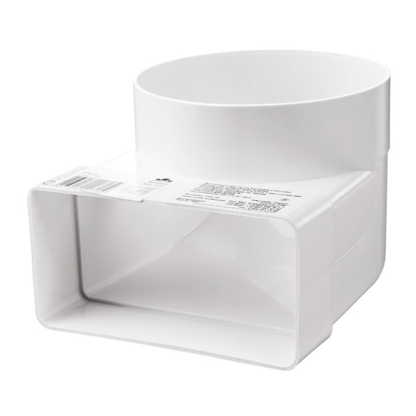 Це коліно для вентиляційного каналу плоcкого типу з розміром 60x204xØ125 мм, призначене для зміни напрямку повітряного потоку та його геометрії з плоского на кругле. Виріб ідеально підходить для систем вентиляції в житлових та комерційних приміщеннях, забезпечуючи надійне і довговічне з’єднання.