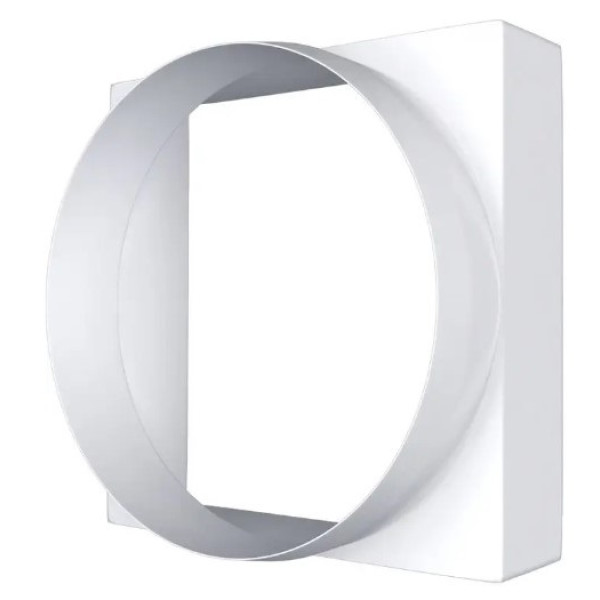 Цей перехід має форму, яка поєднує квадратний вхідний зріз 90x100 мм з круглим виходом. Використовується в системах вентиляції для зміни профілю повітропроводу, що дозволяє підключати різні елементи без додаткових адаптерів. Модель підходить для побутового та комерційного застосування, виконана в білому кольорі для естетичності.