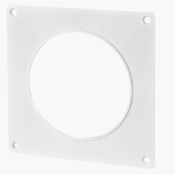 Пластина виготовлена у формі компактного кріпильного елемента з отвором діаметром 100 мм. Вона застосовується для декорування виведення повітропроводів через стіну будівлі, допомагаючи уникнути попадання вологи, пилу та комах у вентиляційний канал. Виріб підходить для систем побутової вентиляції у квартирах, будинках та комерційних приміщеннях, які потребують якісного обміну повітря.