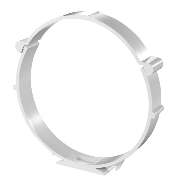 Кріплення є пластмасовим виробом круглої форми, пристосованим для швидкого та надійного утримування круглих вентиляційних труб діаметром 100 мм. Воно застосовується в системах повітропроводів різних типів, забезпечуючи надійність і стійкість з’єднань. Конструкція розрахована на використання у побутових та комерційних вентиляційних мережах.