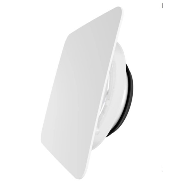 Корпус клапана виготовлений із міцного пластику білого кольору, що відрізняється стійкістю до ультрафіолетового випромінювання та вологи. Конструкція включає круглу решітку з поворотними лопатями для точного регулювання повітря. Поверхня має квадратну накладку та гладке виконання, що полегшує очищення та догляд за виробом.
