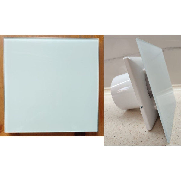 Панель виготовлена з міцного білого скла з гладкою поверхнею. Ця лицьова пластина, яка легко монтується на вентиляційний канал, забезпечуючи надійне прилягання та захист від сторонніх предметів. Матеріал стійкий до вологи і температурних коливань, що гарантує тривалий термін експлуатації.