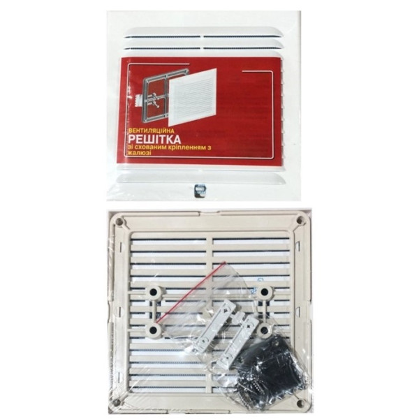 Решітка виготовлена з міцного та стійкого до впливу навколишнього середовища пластику. Її конструкція включає міцний корпус, що підвищують стійкість до деформацій, та монтажні отвори для надійного кріплення на вентиляційний отвір. Матеріал не піддається корозії, що забезпечує довготривалу експлуатацію та збереження зовнішнього вигляду.