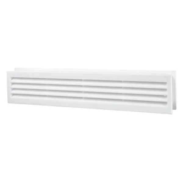 Корпус решітки виготовлений із якісного міцного пластику білого кольору, що робить її стійкою до впливу вологи та механічних пошкоджень. Конструкція передбачає щілинні вентиляційні прорізи, які дозволяють оптимально пропускати повітря, не порушуючи загальний вигляд дверей.