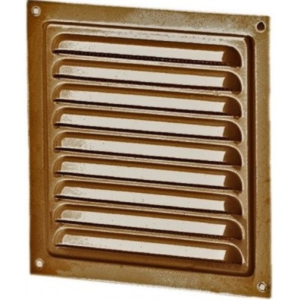 Ця вентиляційна решітка має класичну квадратну форму та виготовлена з міцного металу, пофарбованого у коричневий колір. Вона використовується для відведення або подачі повітря у системах вентиляції житлових і комерційних приміщень. Конструкція забезпечує надійний повітрообмін і стійкість до корозії завдяки якісному фарбуванню, що підвищує довговічність виробу. Решітка підходить для монтажу на вентиляційні канали відповідного розміру.