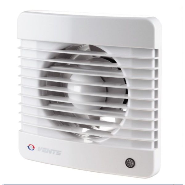 Вентс 150 МВТ Турбо — витяжний вентилятор осьового типу серії М українського виробництва з діаметром патрубка 150 мм та двигуном підвищеної потужності. Призначений для побутового використання: ванних кімнат, кухонь та інших приміщень. Модифікація «Турбо» відрізняється збільшеною продуктивністю 345 м³/год — значно більше за стандартні моделі діаметром 150 мм. Шнурковий вимикач («В» у маркуванні) дозволяє вмикати та вимикати вентилятор витягуванням шнурка — зручно, коли відсутній окремий настінний вимикач або потрібно незалежне управління. Вбудований таймер («Т» у маркуванні) продовжує роботу після відключення — довентилює приміщення. Двигун на кулькових підшипниках забезпечує збільшений ресурс та надійність. Корпус та крильчатка виготовлені з АБС-пластику. Ступінь захисту IP34. Допустима температура повітря — від +1 до +40 °C.