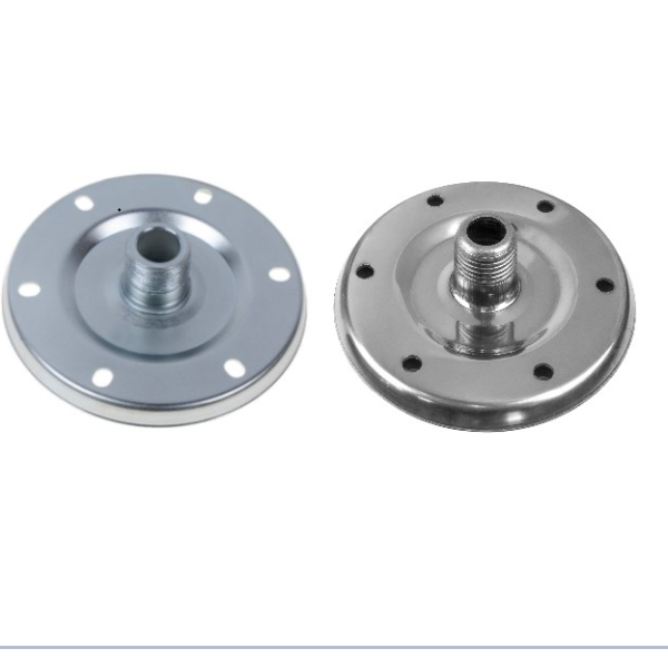 Основою фланця є міцна сталева основа з порошковим або цинковим покриттям для захисту від іржі та корозії. Конструкція включає плоский диск з отвором для кріплення на бачок, що забезпечує щільне прилягання і герметичність з’єднання. Важливими елементами є посилені ребра жорсткості, що підвищують стійкість до зношування.