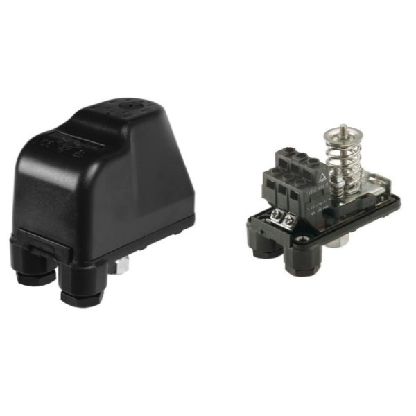 Корпус пристрою виконаний з міцного пластику, який забезпечує надійний захист електроніки від пилу і вологи. Основними елементами є: дві пружини налаштування (велика - тиск включення, мала - різниця між тиском включення і виключення насоса), мембрана, контактна група - роз’ємні з’єднання для підключення живлення і насоса.