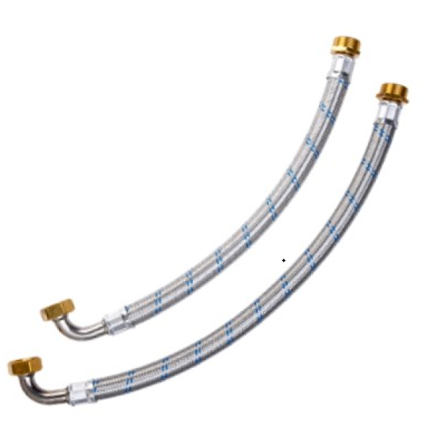 Внутрішня трубка (основа) виготовляється з товстостінної гуми EPDM (етилен-пропіленовий каучук). Вона нетоксична (харчовий допуск), витримує температуру до +90...+95°C і дуже еластична, що дозволяє їй розширюватися при тиску. Зовнішня оплітка - захисний шар з нержавіючої сталі. Вона не дає гумовій трубці роздутися або розірватися під тиском води (тримає до 10 бар). Фітинги (кінцевики): З одного боку накидна гайка з коліном і внутрішньою різьбою 1". З іншого — штуцер (зовнішня різьба) 1". Матеріал - нікельована або хромована латунь, стійка до корозії.