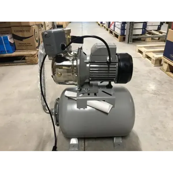 Ця насосна станція складається з відцентрового самовсмоктуючого насоса з чавунним корпусом, реле тиску, манометра та гідроакумулятора об'ємом 24 л із нержавіючої сталі. Обладнання автоматично вмикається для підтримання заданог тиску в системі, що робить його ідеальним для побутового водозабору з свердловин чи колодязів глибиною до 9 м. Воно підходить для заміських будинків, садових ділянок чи невеликих котеджів, де потрібна стабільна подача води без постійного нагляду.