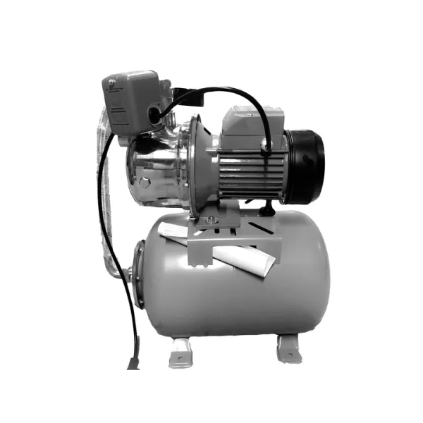 Корпус насоса та бак виготовлені з високоякісної нержавіючої сталі, стійкої до корозії та механічних пошкоджень. Конструкція включає робоче колесо з технополімеру, валом із нержавіючої сталі та нержавіючий корпус для міцності. Захисні елементи, як реле тиску та манометр, забезпечують безпечну експлуатацію.