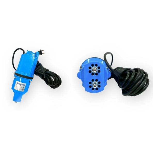 Компактний вібраційний насос має циліндричну форму, що полегшує його занурення у вузькі колодязі чи свердловини. Пристрій працює за принципом вібрації, створюючи потужний потік води без механічних частин, схильних до зносу. Він ідеально підходить для домашнього водопостачання, поливу саду чи наповнення ємностей, де потрібна висока надійність у різних умовах експлуатації, включаючи воду з невеликими домішками.