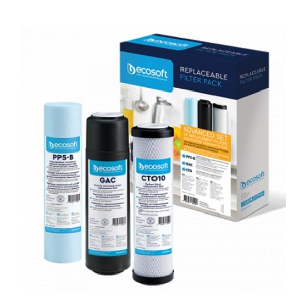 Покращений Комплект картриджів Ecosoft 1-2-3 для фільтрів зворотнього осмосу