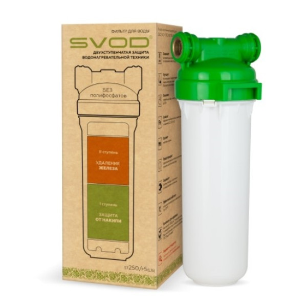 Фільтр СВОД-АС + знезалізнення L1/2 має компактну конструкцію з якісних матеріалів, розроблену для під’єднання до систем водопостачання з діаметром труби 1/2 дюйма. Він ефективно видаляє залізо та інші домішки, покращуючи смак і запах води. Завдяки простоті експлуатації та тривалому ресурсному потенціалу фільтр підходить для використання в квартирах та приватних будинках.