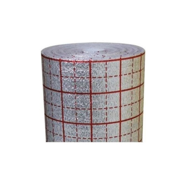Полотно виготовлене зі спіненого теплоізоляційного матеріалу товщиною 10,0 мм, з одного боку покритого ламінованою плівкою з сітчастою розміткою. Така структура зменшує тепловтрати, захищає основу від вологи й механічних ушкоджень, а розмітка допомагає рівномірно укладати труби або нагрівальні елементи з потрібним кроком.