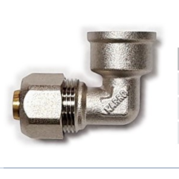 Цей фітинг має один кінець із внутрішньою різьбою та інший — із компресійним (обтискним) з’єднанням. Коліно виготовлене з латуні з нікельованим покриттям, що підвищує корозійну стійкість і тривалість експлуатації. Герметичність з’єднання забезпечують каучукові ущільнювальні кільця, а міцність — латунний корпус з високим вмістом міді.