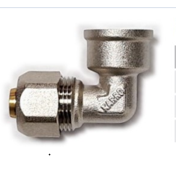 Цей фітинг має один кінець із внутрішньою різьбою та інший — із компресійним (обтискним) з’єднанням. Коліно виготовлене з латуні з нікельованим покриттям, що підвищує корозійну стійкість і тривалість експлуатації. Герметичність з’єднання забезпечують каучукові ущільнювальні кільця, а міцність — латунний корпус з високим вмістом міді.