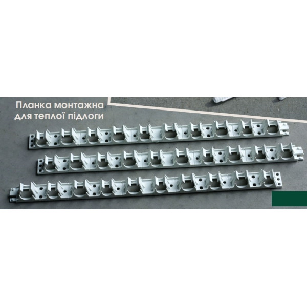Ця монтажна планка є спеціалізованим аксесуаром для систем теплої підлоги, призначеним для надійного і зручного кріплення нагрівальних кабелів. Вона забезпечує рівномірний розподіл тепла та взаємну фіксацію елементів системи, що підвищує ефективність і довговічність роботи теплої підлоги.