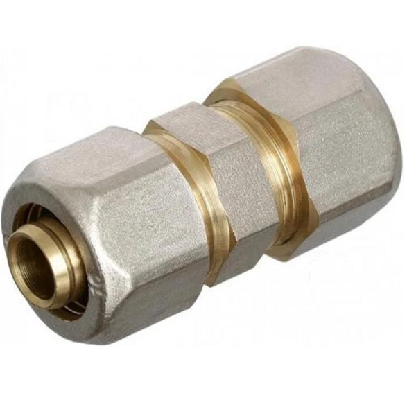 Ця муфта призначена для з'єднання металопластикових труб діаметром 16 мм, що робить її універсальним елементом для систем водопостачання. Її конструкція забезпечує надійне з'єднання без необхідності використання спеціального обладнання, завдяки чому монтаж стає швидким і простим.