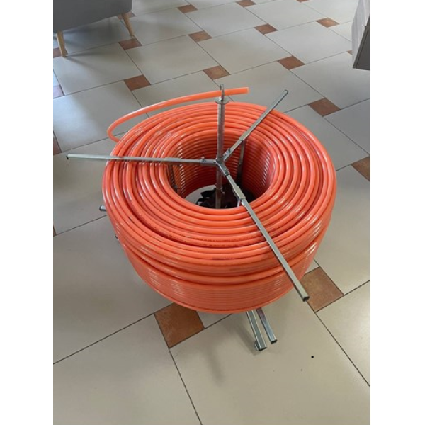 Розмотувач труб Termojet — це спеціалізований інструмент для акуратного та швидкого розмотування гнучких труб. Головна мета пристрою — полегшити монтаж трубопровідних систем, що використовують поліетиленові або інші гнучкі труби. Основні переваги — надійність у роботі, простота експлуатації та зручність транспортування.
