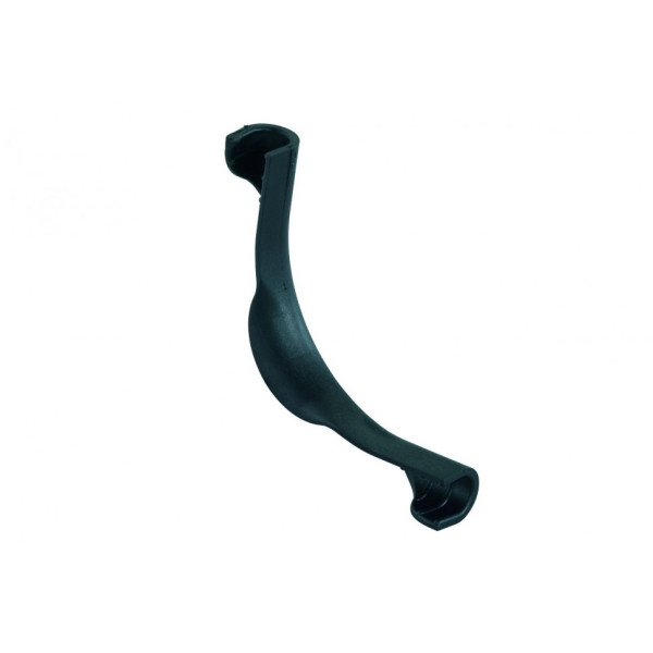 Фіксатор виготовлений із міцного технічного пластику, стійкого до механічних навантажень та впливу вологи. Конструкція забезпечує надійну підтримку труби у вигнутому положенні, що сприяє довговічності всієї системи.