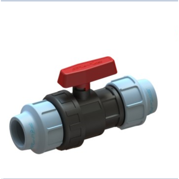 Корпус крана виготовлений з високоякісного поліпропілену , що забезпечує стійкість до механічних пошкоджень і агресивних середовищ. Важіль виконаний із міцного матеріалу , який не іржавіє і легко експлуатується. Всі з'єднувальні елементи оптимізовані для швидкого монтажу на поліетиленові труби без додаткових адаптерів.