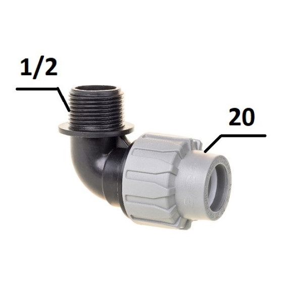 - Тип виробу: Кутник ПЕ Ø20x1/2"З
