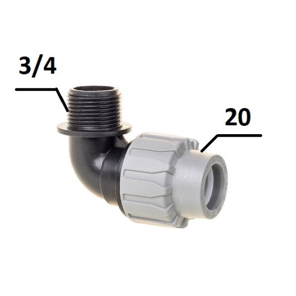 - Кутник ПЕ Ø20x3/4"З