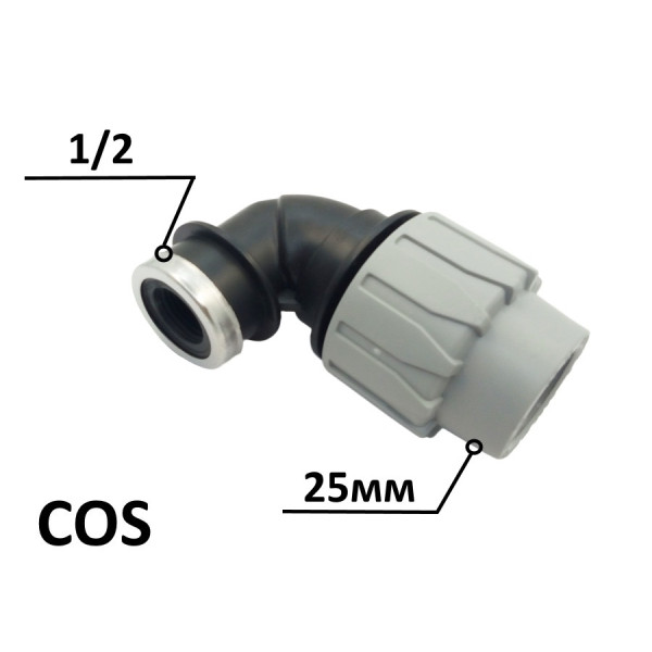 - Тип виробу: Кутник ПЕ Ø25x1/2"В