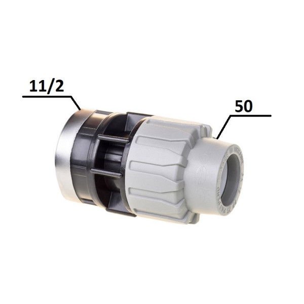 Муфта виготовлена у формі циліндричного з'єднувача з різьбовим переходом, що дозволяє легко підключати поліетиленові труби до труб із зовнішньою різьбою діаметром 1 1/2 дюйма. Застосовується у водопровідних системах і системах подачі рідин, підходить для побутового, промислового та комерційного використання. Модель має високу міцність і добре витримує змінні умови експлуатації.