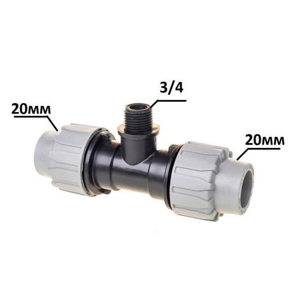 Трійник виготовлений з високоякісного блок-кополімеру поліпропілену з етиленом , має форму трійника з зовнішнім різьбовим переходом 3/4". Використовується для підключення поліетиленових труб діаметром 20 мм у системах холодного водопостачання, а також у зрошувальних системах. Модель забезпечує надійність та довговічність експлуатації .