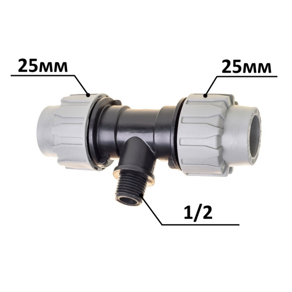 - Трійник ПЕ Ø25x1/2"ЗxØ25 (SantehPlast.COS)
