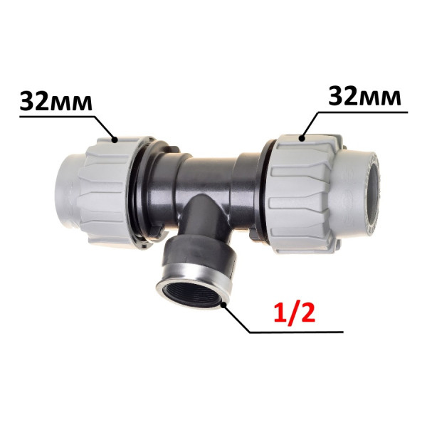 - Трійник ПЕ Ø32x1/2"ВхØ32 (SantehPlast.COS)