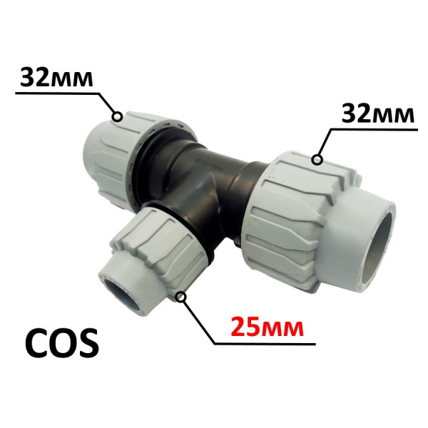 - Тип виробу: Трійник редукційний ПЕ Ø32xØ25xØ32 (SantehPlast.COS)