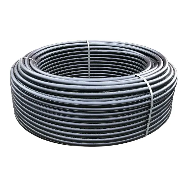 Труба виготовлена з високоякісного поліетилену, має чорне забарвлення та товщину стінки 1,7 мм. Вона поставляється у бухті довжиною 100 метрів, що сприяє зручності транспортування та монтажу. Конструкція передбачає стійкість до хімічних реактивів і механічних пошкоджень, що розширює сфери застосування. Даний тип труби зазвичай використовується для прокладання водопровідних та кабельних систем там, де не вимагається тиск вище 6 атмосфер.