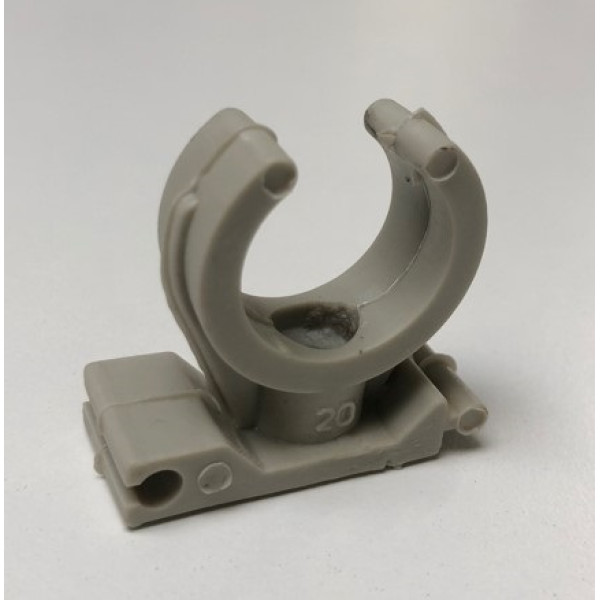 Кліпса виконана у стандартній формі зі спеціальним замком для фіксації труб діаметром 20 мм. Вона широко застосовується при монтажі внутрішніх трубопроводів із поліпропілену у житлових та комерційних будівлях. Сумісність із трубами PPR забезпечує надійне закріплення без потреби у додаткових інструментах. Кліпса дозволяє гармонійно вписуватися у будь-який інтер’єр монтажної області за рахунок сірого кольору.